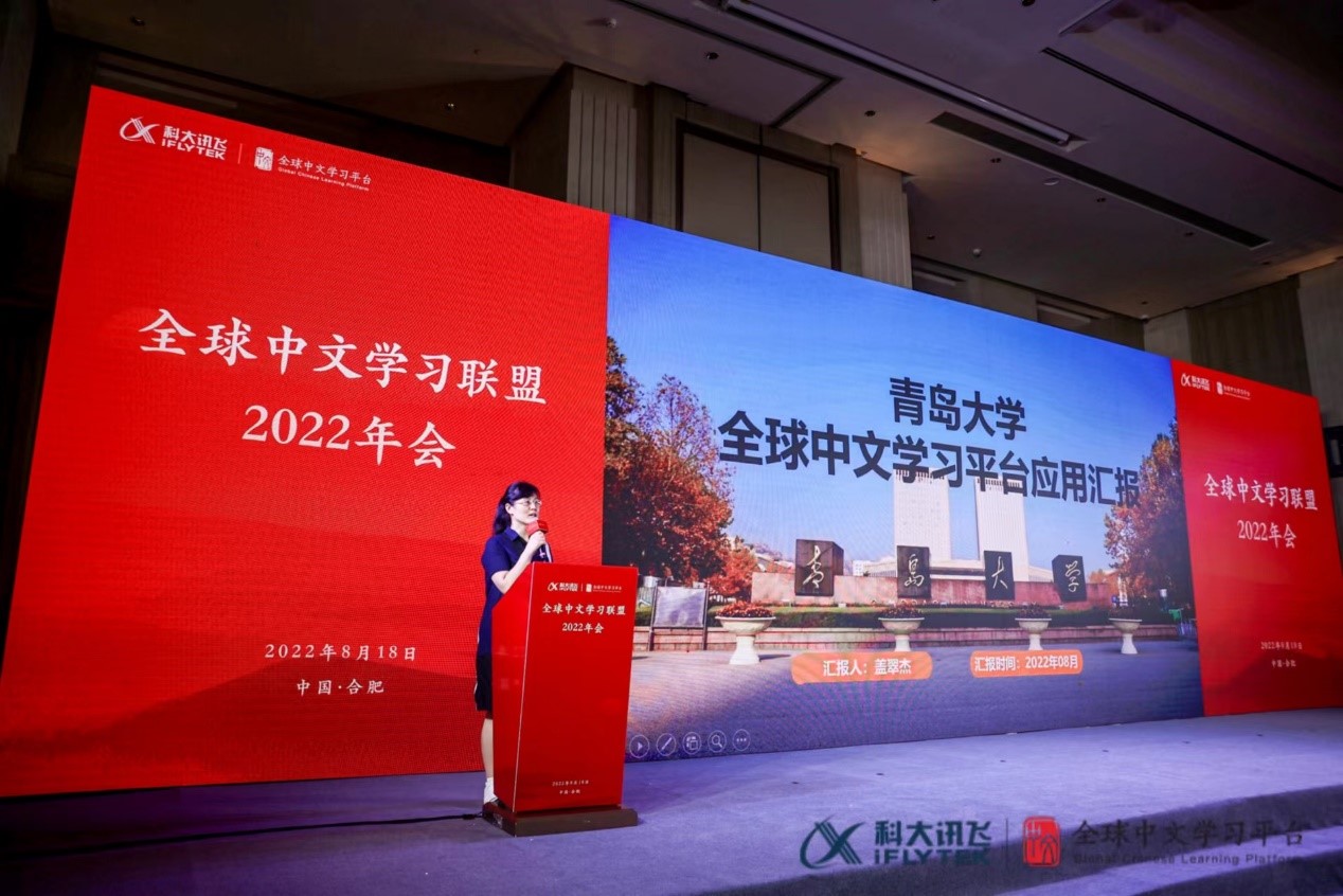 8月18日,全球中文学习联盟2022年会在安徽合肥召开,教育部语言文字信息管理司负责同志以及来自联盟单位的60多位专家代表出席了年会。会上,科大讯飞副总裁汪张龙为yl23411永利集团官网授予全球中文学习平台应用示范校牌匾。
