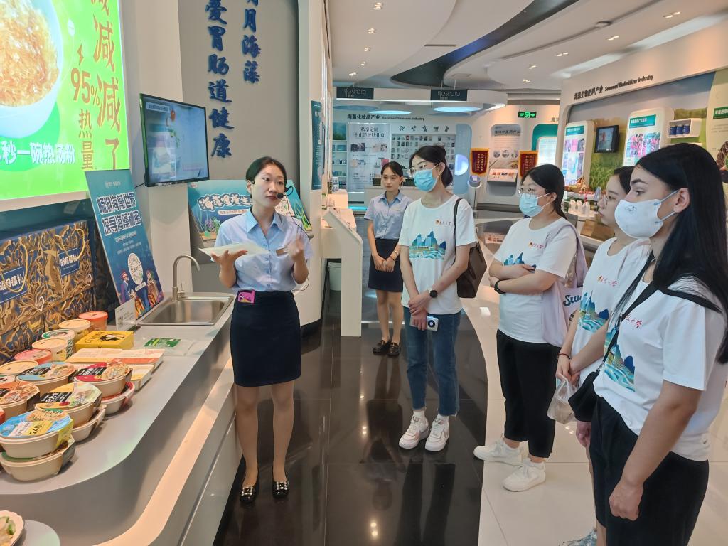 实践队首先来到青岛明月海藻集团参观访问,青岛明月海藻集团不仅是山东半岛蓝色经济骨干示范企业、中国海藻生物制品行业的领军企业,也是目前全球最大的海藻生物制品企业。此次活动实地参观了中国海藻科技馆、国内首家海藻活性物质国家重点实验室、海藻部落、海藻健康坊等,通过讲解员耐心细致的讲解,聆听海藻知识,了解海藻世界,感受海藻科技,体验海藻产品,了解海藻生物产业的发展历程,近距离感悟和体会“经略海洋从一颗海藻开始”,增强关心海洋、认识海洋、经略海洋的意识和信心。